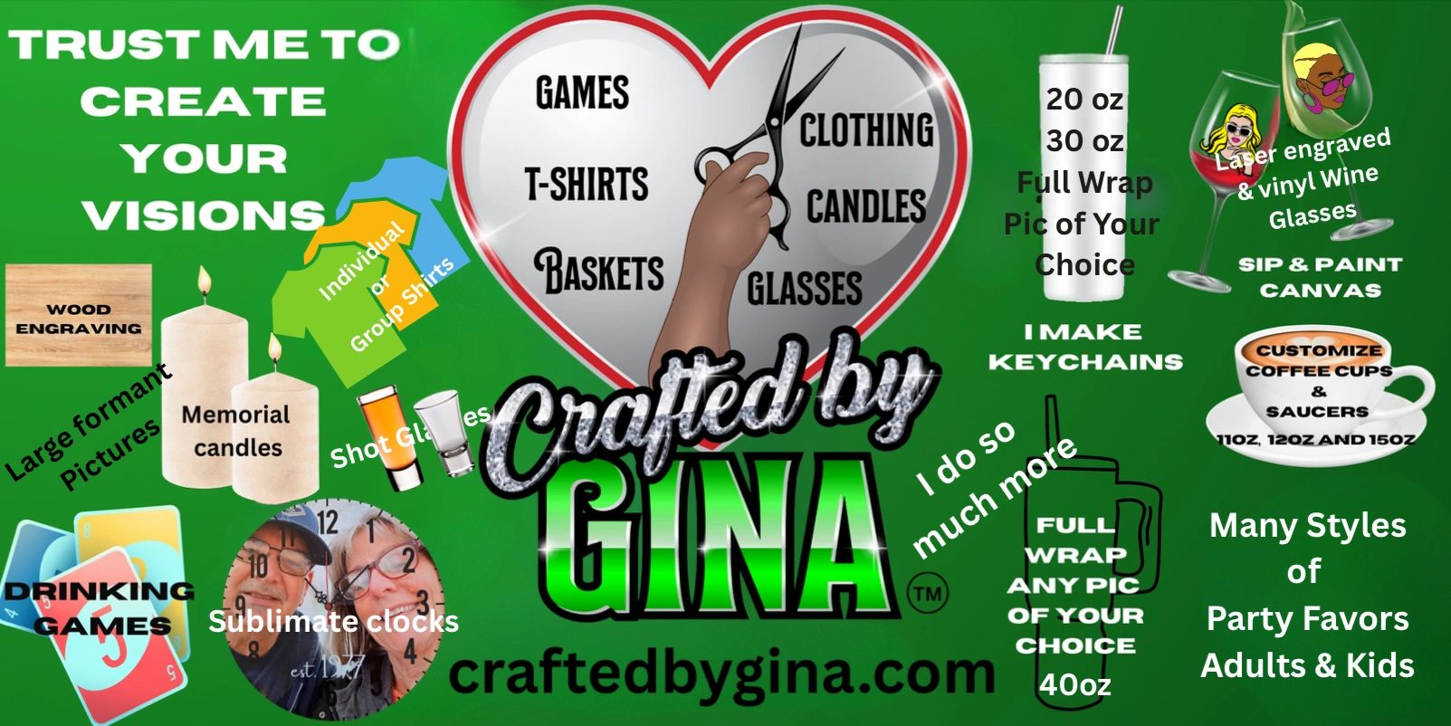 Discover unique craft creations and handmade treasures at Crafted by Gina. My passion for creativity and quality shines through in every piece. Explore my collection of personalized gifts and find the perfect item to brighten your day or gift to a loved one.